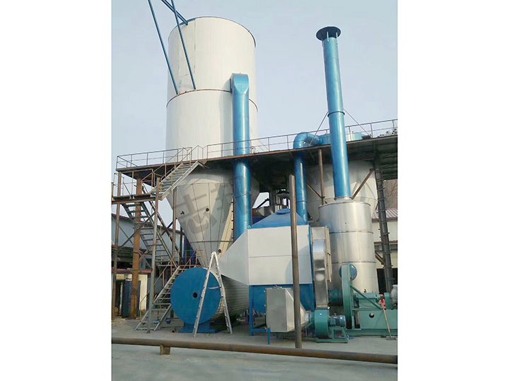开启离心风机,然后开启电加热,并检查有否漏气,如正常可以进行筒身预热,因热风预热决定着干燥设备的蒸发能力,在不影响被干燥物料的质量的前提下,应尽可能提高进风温度;预热时,干燥室底部和旋风分离器下料口处阀门要关好,以免冷风进入干燥室,降低预热效率;当干燥室进口温度达到目180℃~220℃时,开启离心喷头,当喷头达到指定转速时,开启进料泵,加入料液,进料量应由小到大,否则将产生粘壁现象,直到调节到适当量。料液的浓度应根据物料干燥的性质温度来配制,以保证干燥后成品有良好的流动性;干燥成品的温度和湿度,取决于排风温度,在运行过程中,保证排风温度为一个常数是很重要的,这取决于进料量的大小,进料量调节稳定,出口温度是不改变的。若料液的含固量和流量发生变化时出口温度也会出现变动;产品温度太低,可减少加料量,以提高出口温度。产品的温度太高,则反之。对于产品温度较低的热敏性物料可增加料量,以降低排风温度,但产品的湿度将相应提高;干燥后的成品被收集,在塔体下部和旋风分离器下部的授粉器内,在授粉器未经充满前就应调换,在调换授粉器时,要先将上面的蝶阀关闭方可进行;若干燥的成品具有吸湿性,旋风分离器及其管道,授粉器的部位应用绝热材料包扎,这样可以避免干燥成品的吸潮吸湿。